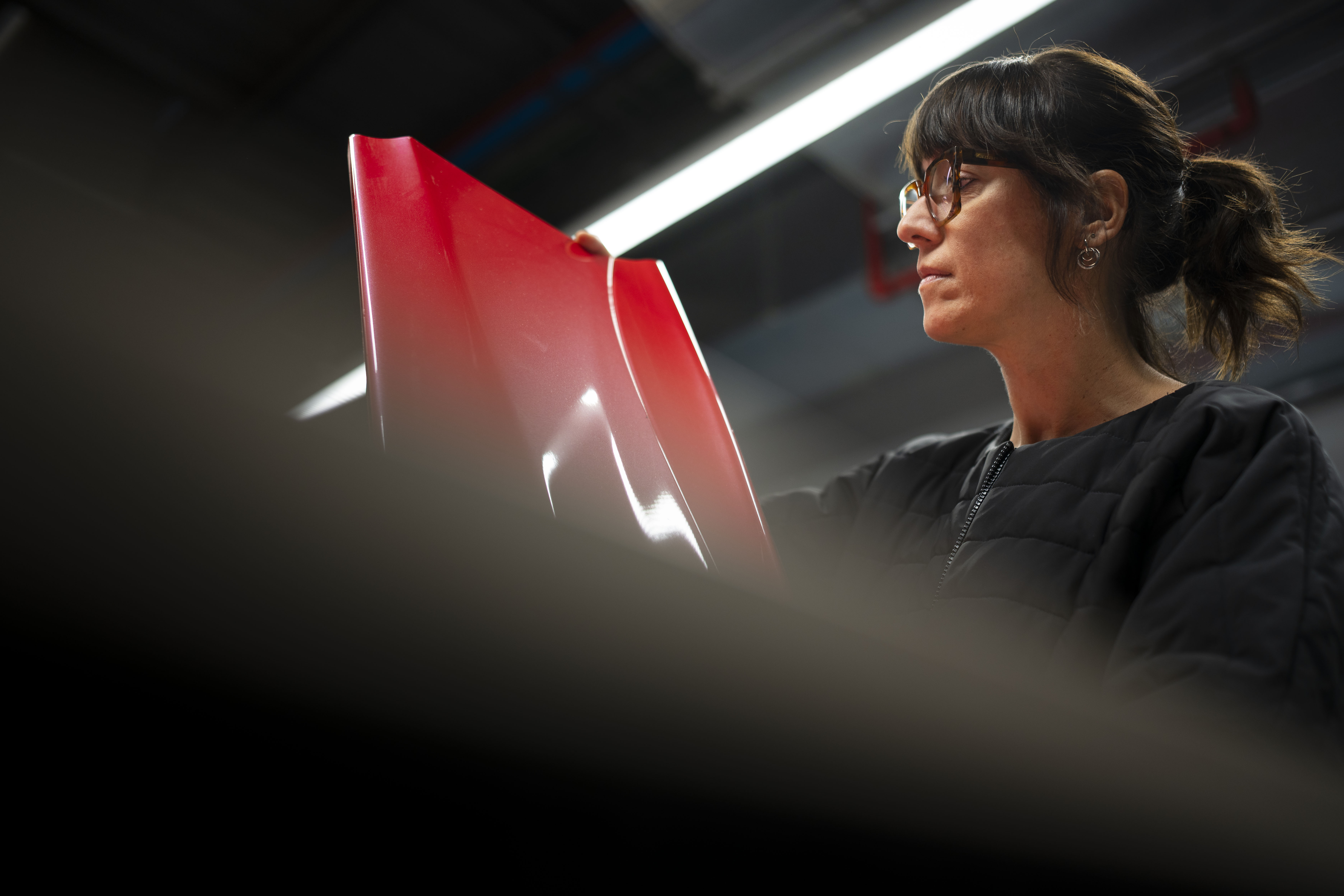 Kolor odbieramy zupełnie inaczej w zależności od tego, czy pojawia się na papierze, tkaninie czy metalu. „Podobnie zmienia się wrażenie, gdy jest on na małym lub dużym obiekcie, albo gdy patrzymy na niego w świetle naturalnym lub sztucznym. Dlatego stworzenie koloru dla tak dużego obiektu jak samochód, który dodatkowo widzimy w ruchu, to spore wyzwanie” – zauważa Gómez. Liminal jest tego najlepszym przykładem. „To czerwień, która w zależności od kąta padania światła może wyglądać bardziej pomarańczowo lub bardziej w odcieniu magenty, a to wszystko dzięki zastosowaniu różnych pigmentów. Samochód ujawnia subtelne niuanse, gdy się wokół niego poruszamy lub zmieniamy perspektywę” – dodaje.
