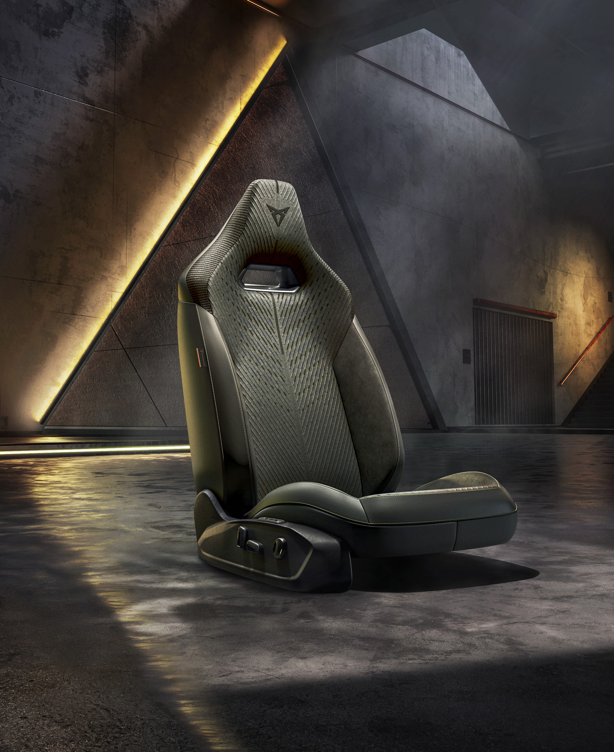 W kabinie zastosowano fotele kubełkowe, wykonane w technologii 3D‑knitting, która eliminuje odpady i pozwala tworzyć tkaniny z 100% materiałów z recyklingu.